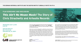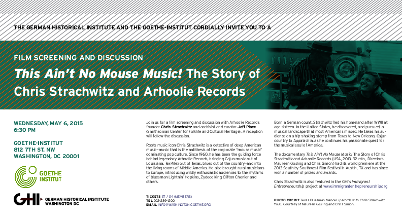 Organized by the German Historical Institute as part of its project on German immigrant entrepreneurs (see Chris Strachwitz’s biography HERE), the Goethe-Institut, and the Smithsonian Center for Folklife and Cultural Heritage.