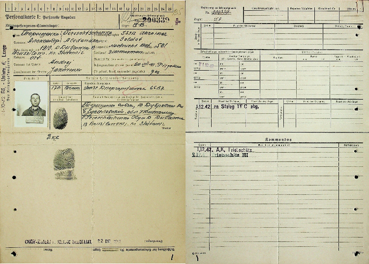 Zentrales Dokument zur Rekonstruktion der Gefangenenbiografien sind die Personalkarten I. Die Wehrmacht, die für die Kriegsgefangenen zuständig war, registrierte die Gefangenen in den Lagern und erfasste unter anderem Namen, Vornamen, Gefangenennummer, Lager, Beruf, Staatsangehörigkeit, Arbeitskommandos und Todesfälle.